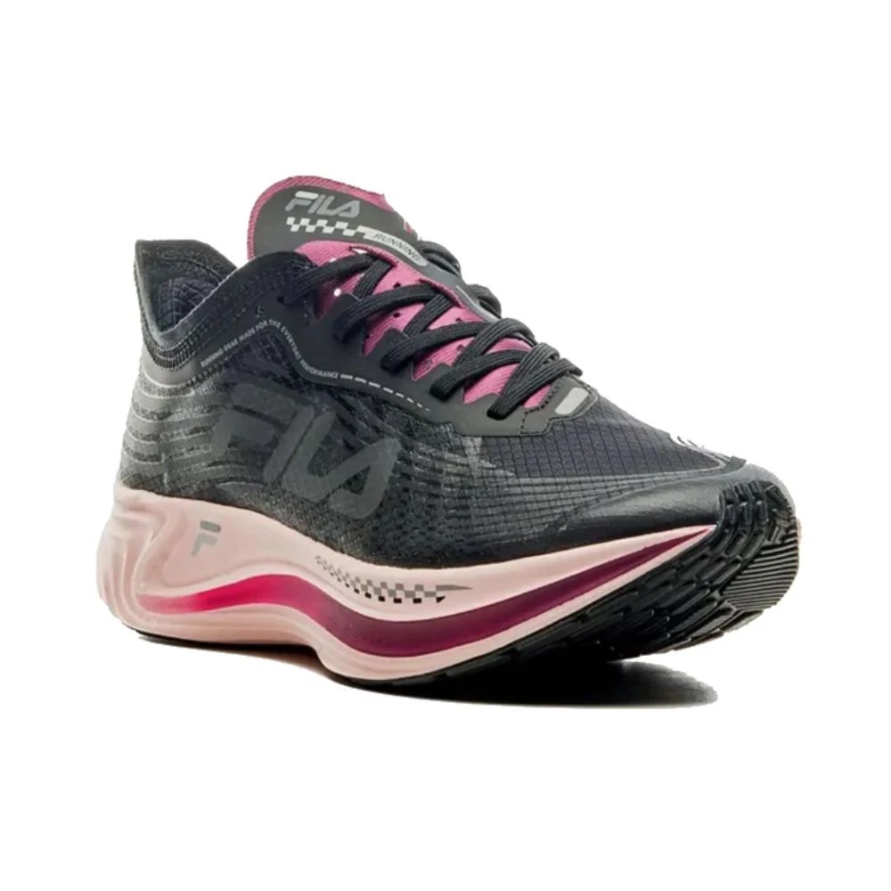O Tênis de Corrida Feminino Fila Racer Carbon traz placas de propulsão SPEED TECH CARBON (presentes em toda extensão da sola). Entre os diferenciais, a peça possui: entressola em EVA com menor densidade; borracha EVER-GRIP nas zonas de contato para maior tração; cabedal com composições de materiais para leveza e conforto; gola e lingueta ergonômicas. Peso: 215 g (tamanho 40 – dentro da margem de variação). Drop: 6mm.
