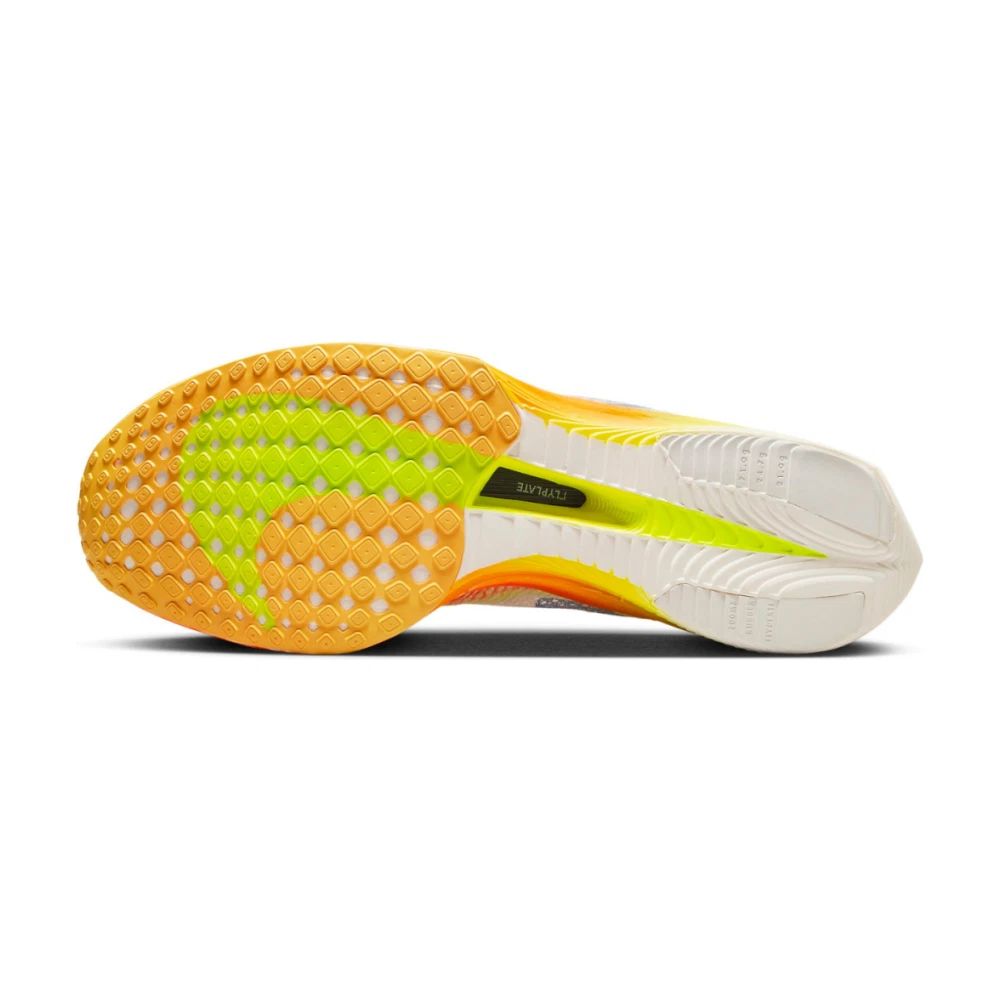 A entressola ZoomX possui duas densidades nessa nova versão, sendo a superior (em maior quantidade) mais macia e a inferior mais firme, isso é uma novidade em relação às versões anteriores e que contribui para uma melhor estabilidade. A placa de carbono está inserida entre essas duas densidades. A altura subiu 1mm, ficando com 32mm na parte dianteira e 40mm na parte traseira, ou seja, 8mm de drop.